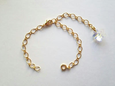上のキャラのパーツと、下のようなチェーンを繋げて(真ん中にキャラのパーツを入れるイメージです)ブレスレットにします。